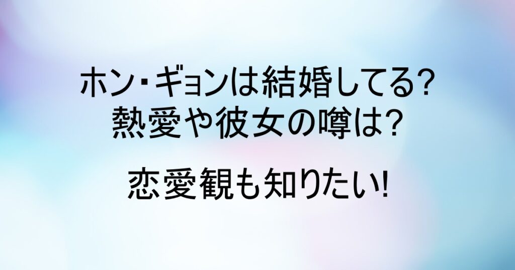 ホン・ギョンは結婚してる?熱愛や彼女の噂は?恋愛観も知りたい