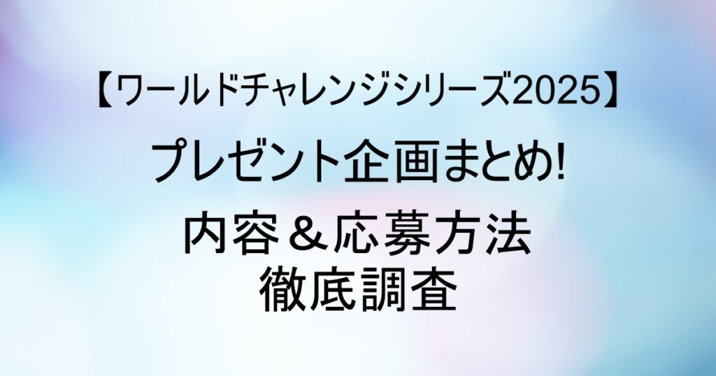 【ワールドチャレンジシリーズ2025】プレゼント企画まとめ!内容&応募方法徹底調査