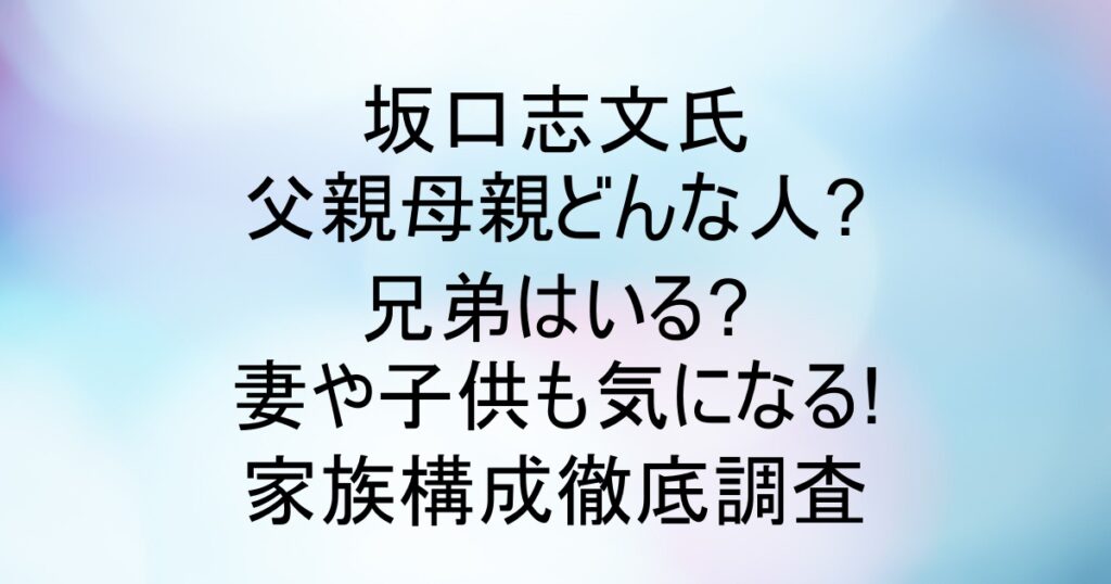 坂口志文氏の父親母親どんな人?兄弟は?妻や子供も気になる!家族構成徹底調査