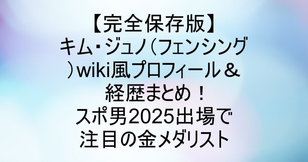 【完全保存版】キム・ジュノ(フェンシング)wiki風プロフィール&経歴まとめ!スポ男2025出場で注目の金メダリスト