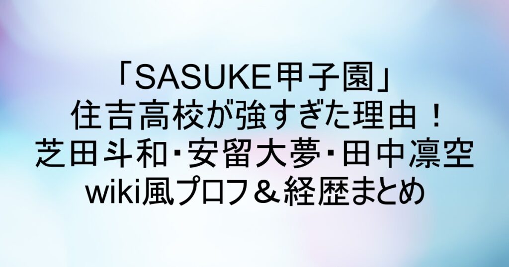 「SASUKE甲子園」住吉高校が強すぎた理由!芝田斗和・安留大夢・田中凛空wiki風プロフ&経歴まとめ
