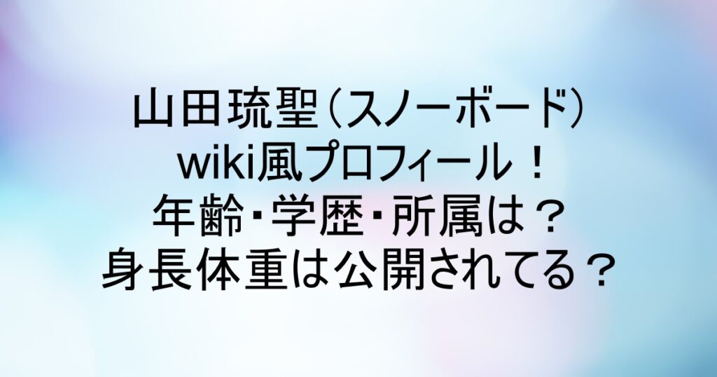 山田琉聖(スノーボード)wiki風プロフィールまとめ!年齢・学歴・所属は?身長体重は公開されてる?