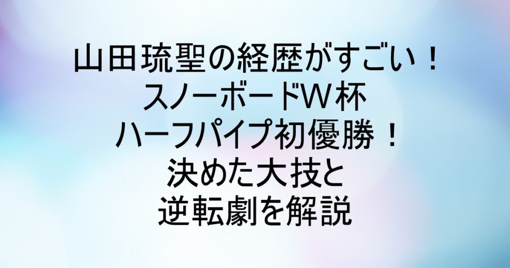 こんにちは、あゆりんです。 スノーボードW杯ハーフパイプで、山田琉聖(やまだ・りゅうせい)選手が“初優勝”! ニュースを見た瞬間、思わず「うわ、ついに来た…!」って声が出ました。 ハーフパイプって、ただ回ってるだけじゃなくて、高さ・回転・つなが... -