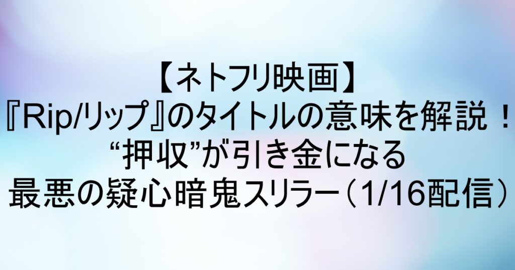 【ネトフリ映画】『Rip/リップ』のタイトルの意味を解説!“押収”が引き金になる最悪の疑心暗鬼スリラー(1/16配信)