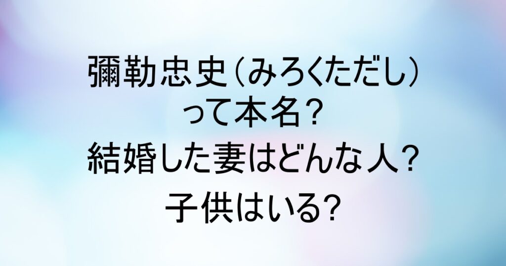 彌勒忠史(みろくただし)って本名?結婚した妻はどんな人?子供はいる?