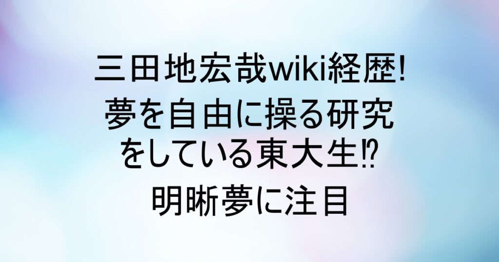 こんにちは、あゆりんです。 2025年10月8日に放送された『世界の何だコレ!?ミステリー』に出演していた東大生の三田地宏哉さん。 なんと、「夢を自由に操る研究」をしているのだとか。 えっ!?夢って自由に操れるの?見た内容を覚えていないこともある...
