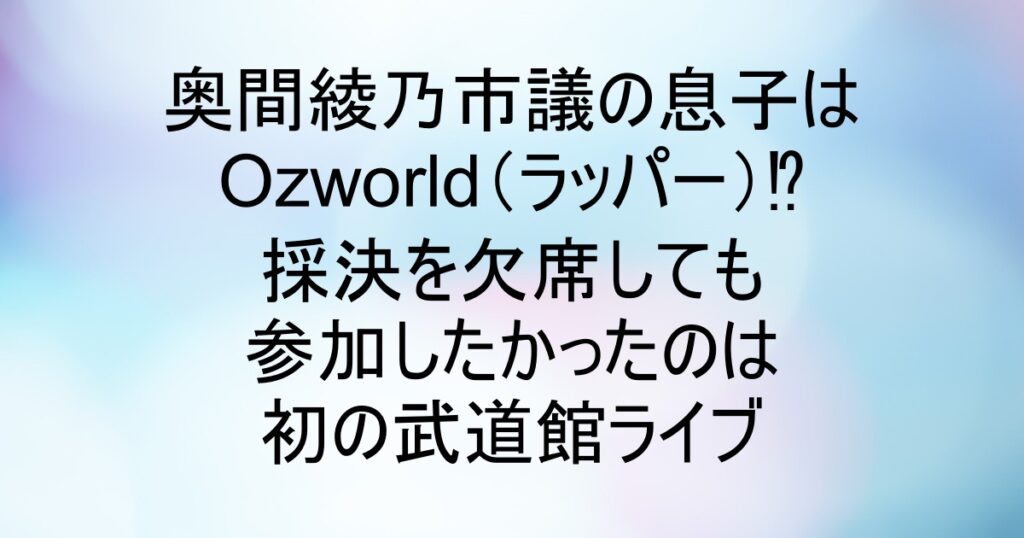 奥間綾乃市議の息子はOZworld(ラッパー)!?採決を欠席しても行きたかった初の武道館ライブ