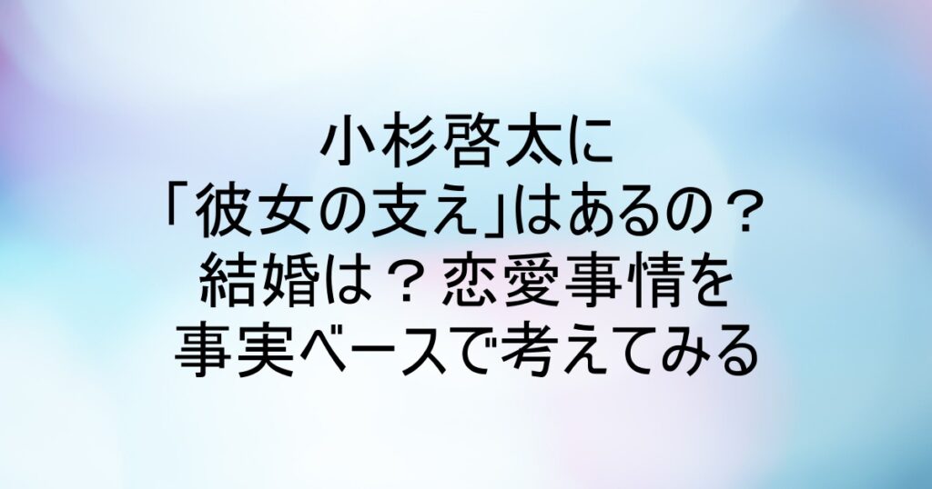 小杉啓太に「彼女の支え」はあるの?結婚は?恋愛事情を事実ベースで考えてみる