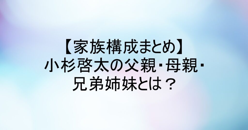 【家族構成まとめ】小杉啓太の父親・母親・兄弟姉妹とは?10代で欧州に挑んだ才能を支えた「家族の距離感」がすごい