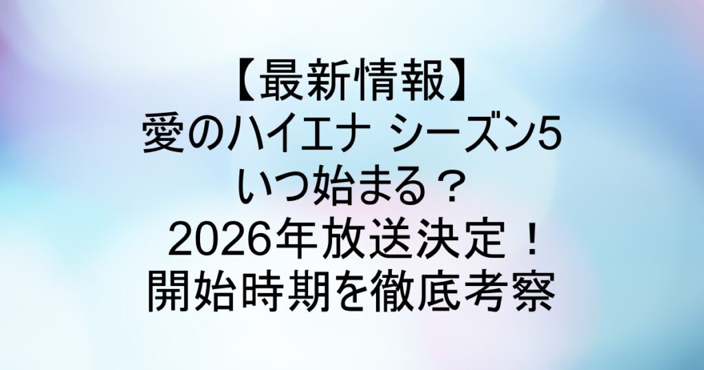 【最新情報】愛のハイエナ シーズン5はいつ始まる?2026年放送決定!開始時期を徹底考察