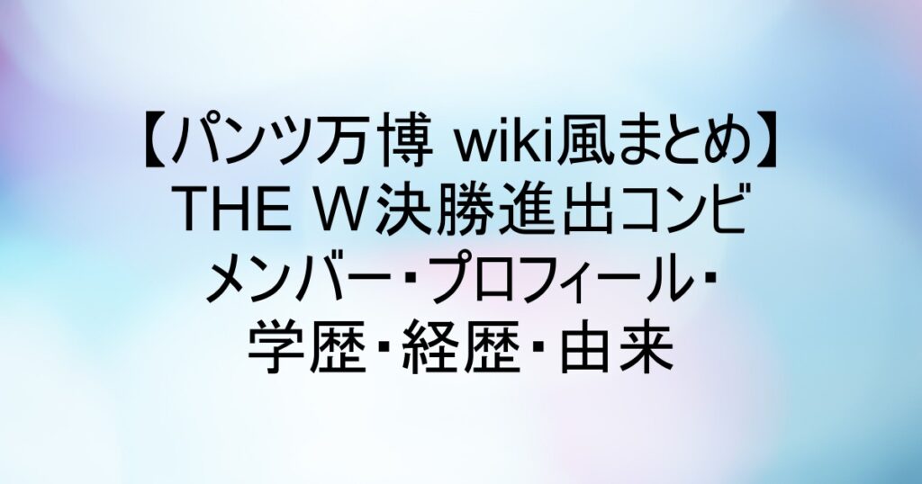 【パンツ万博 wiki風まとめ】THE W決勝進出コンビのメンバー・プロフィール・学歴・経歴・由来までぜんぶ乗せ!