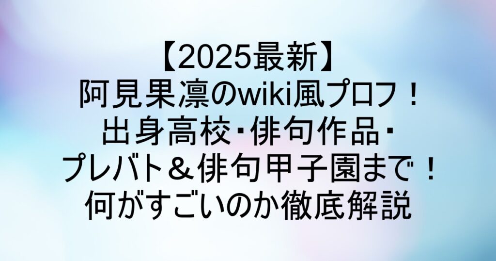 【2025最新】阿見果凛のwiki風プロフ!出身高校・俳句作品・プレバト&俳句甲子園まで!何がすごいのか徹底解説