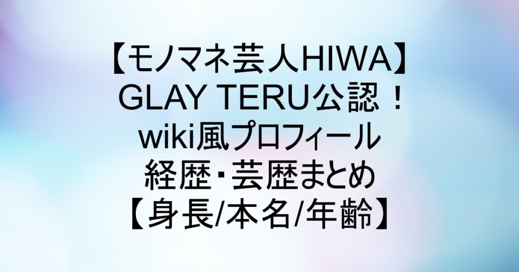 【モノマネ芸人HIWA】GLAY TERU公認!wiki風プロフィール・経歴・芸歴まとめ【身長/本名/年齢】