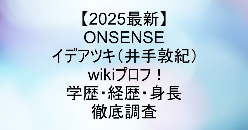 ONSENSE・イデアツキ(井手敦紀)wikiプロフ!学歴・経歴・身長徹底調査【2025最新】