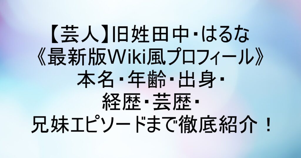 こんにちは、あゆりんです。 「芸人 旧姓田中 はるな wiki プロフィール 経歴 芸歴」 という検索ワードでこのページに来たあなたへ。 この記事では、“旧姓田中の妹”・はるな について、現在公開されている公式情報をもとに 正確に まとめ直しつつ、Yo... -