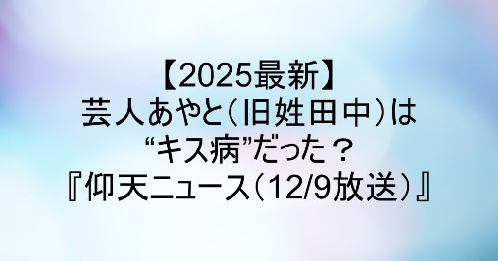 【2025最新】芸人あやと(旧姓田中)は“キス病”だった?『仰天ニュース(12/9放送)』