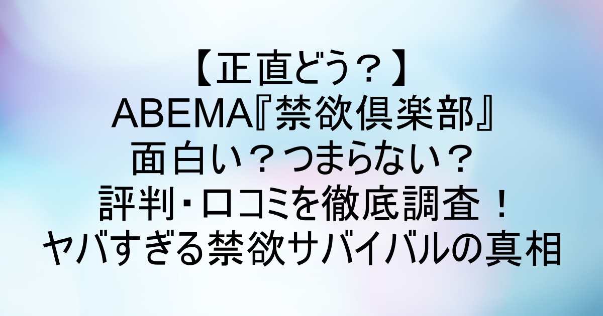 ABEMAの新番組『禁欲倶楽部~もう、我慢できないです~』、タイトルからしてだいぶヤバそうですよね。