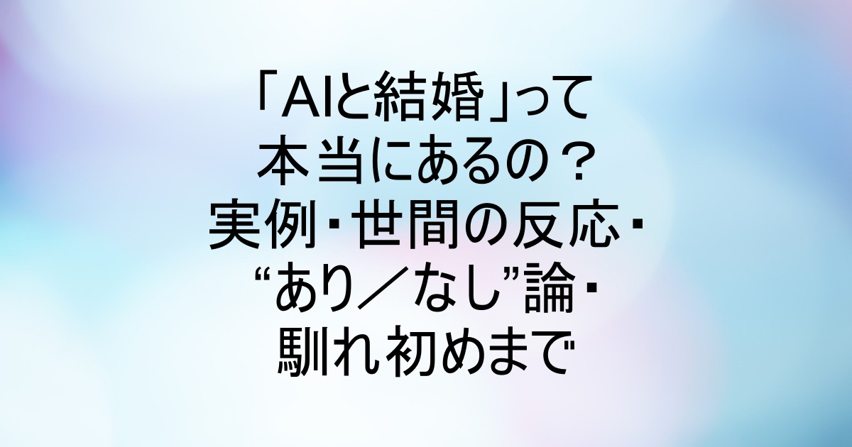 「AIと結婚」って本当にあるの?実例・世間の反応・“あり/なし”論・そして馴れ初めまでぜんぶ