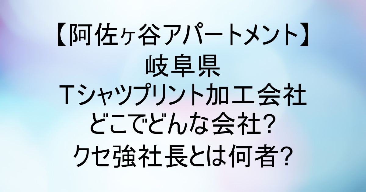 - 『阿佐ヶ谷アパートメント』でロケを行った岐阜県Tシャツプリント加工会社は、金ピカ社長室・巨大な社長看板・クセ強社長など、気になるところが満載の「株式会社坂口捺染」。