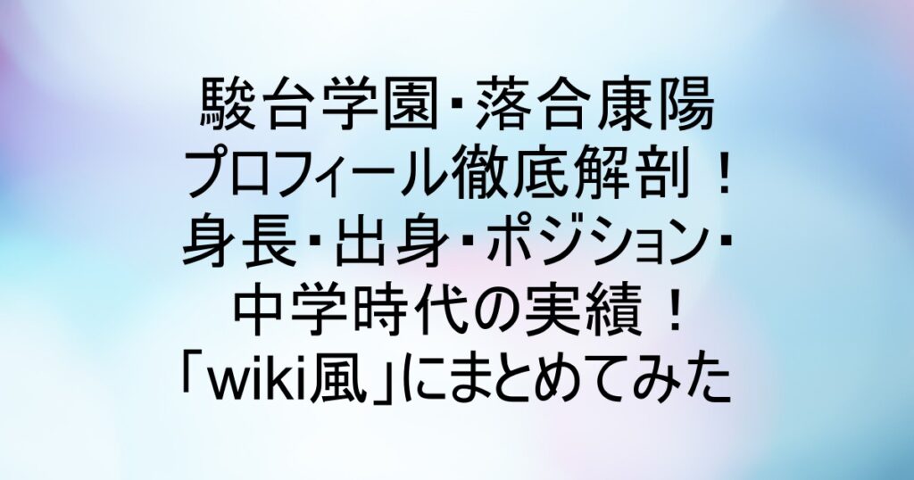 駿台学園・落合康陽のプロフィール徹底解剖!身長・出身・ポジション・中学時代の実績まで「wiki風」にまとめてみた