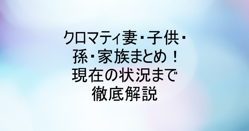 クロマティ妻・子供・孫・家族まとめ!現在の状況まで徹底解説