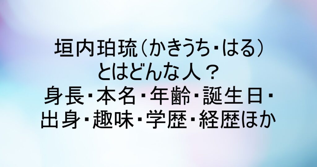 垣内珀琉(かきうち・はる)とはどんな人?身長・本名・年齢・誕生日・出身・趣味・学歴・経歴ほか
