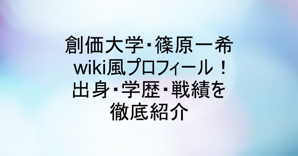 創価大学・篠原一希wiki風プロフィール!出身・学歴・戦績を徹底紹介