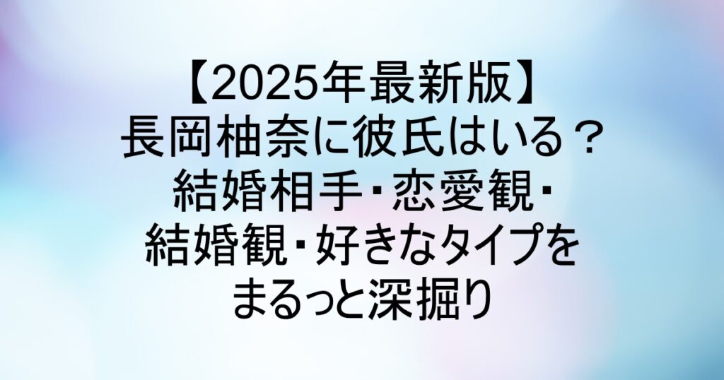 【2025年最新版】長岡柚奈に彼氏はいる?結婚相手・恋愛観・結婚観・好きなタイプをまるっと深掘り