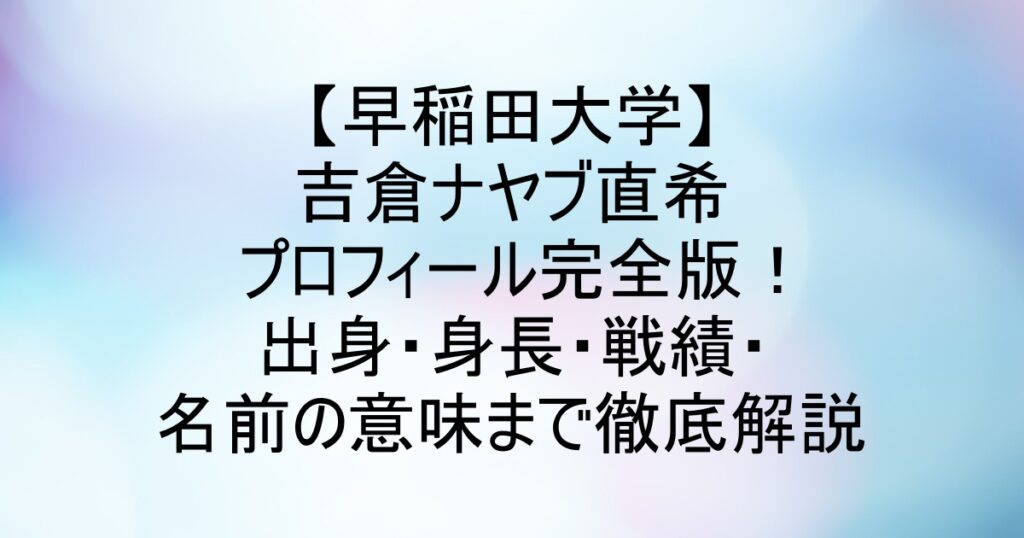 【早稲田大学】吉倉ナヤブ直希プロフィール完全版!出身・身長・戦績・名前の意味まで徹底解説
