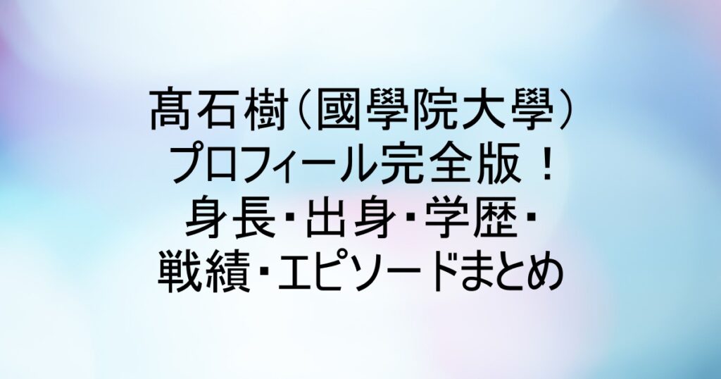 こんにちは、あゆりんです。 國學院大學の新入生・髙石樹(たかいし・いつき)選手。 2025年の陸上ファンなら、この名前を見かけたことがある人も多いのではないでしょうか。 高校時代に5000mで13分58秒23を記録した四国屈指のスピードランナー。 まだ大学... -