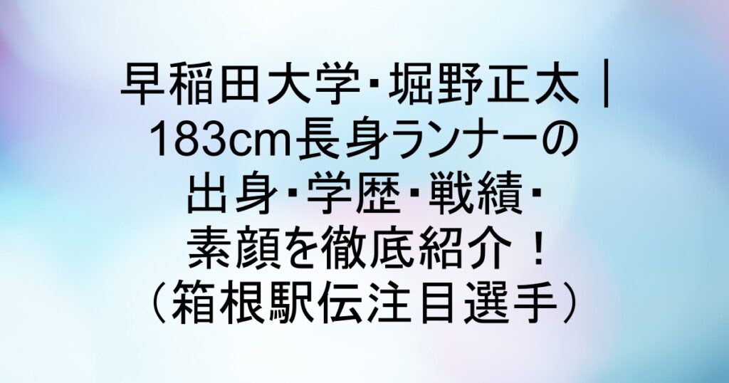 こんにちは、あゆりんです。 「箱根駅伝で注目のルーキーは?」と聞かれたら、私がまず名前を出したいのがこの人。 ──早稲田大学競走部の堀野正太(ほりの・しょうた)選手です。 まだ1年生ながら、すでにその走りでしっかり存在感を放っています。 183cm... -