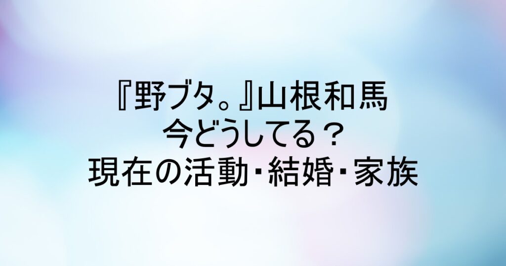 『野ブタ。』の山根和馬さん、今どうしてる?現在の活動・結婚・家族など気になることを徹底調査