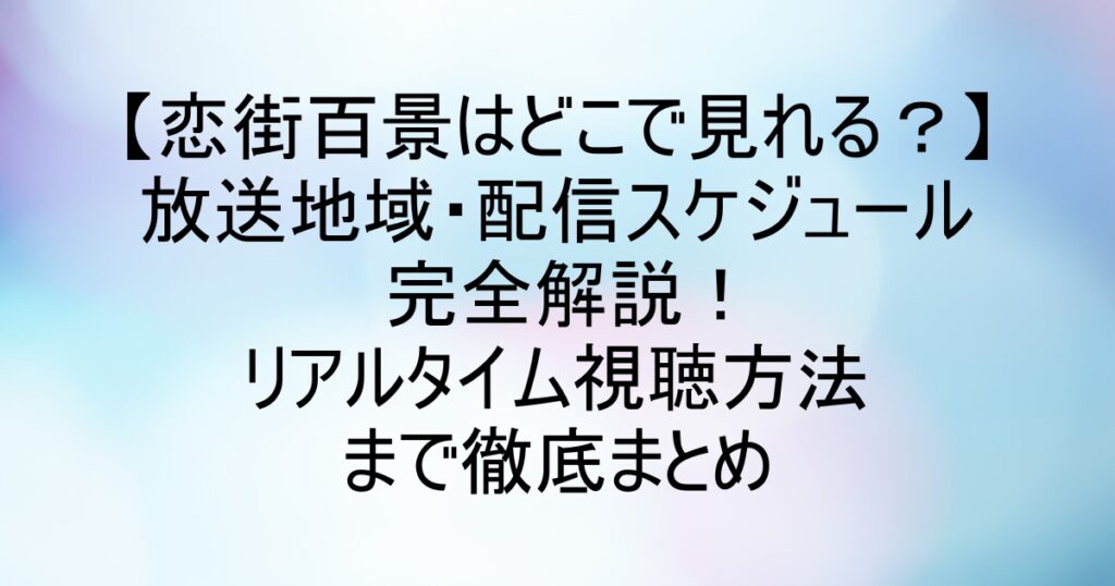 【恋街百景はどこで見れる?】放送地域・配信スケジュール完全解説!リアルタイム視聴方法まで徹底まとめ