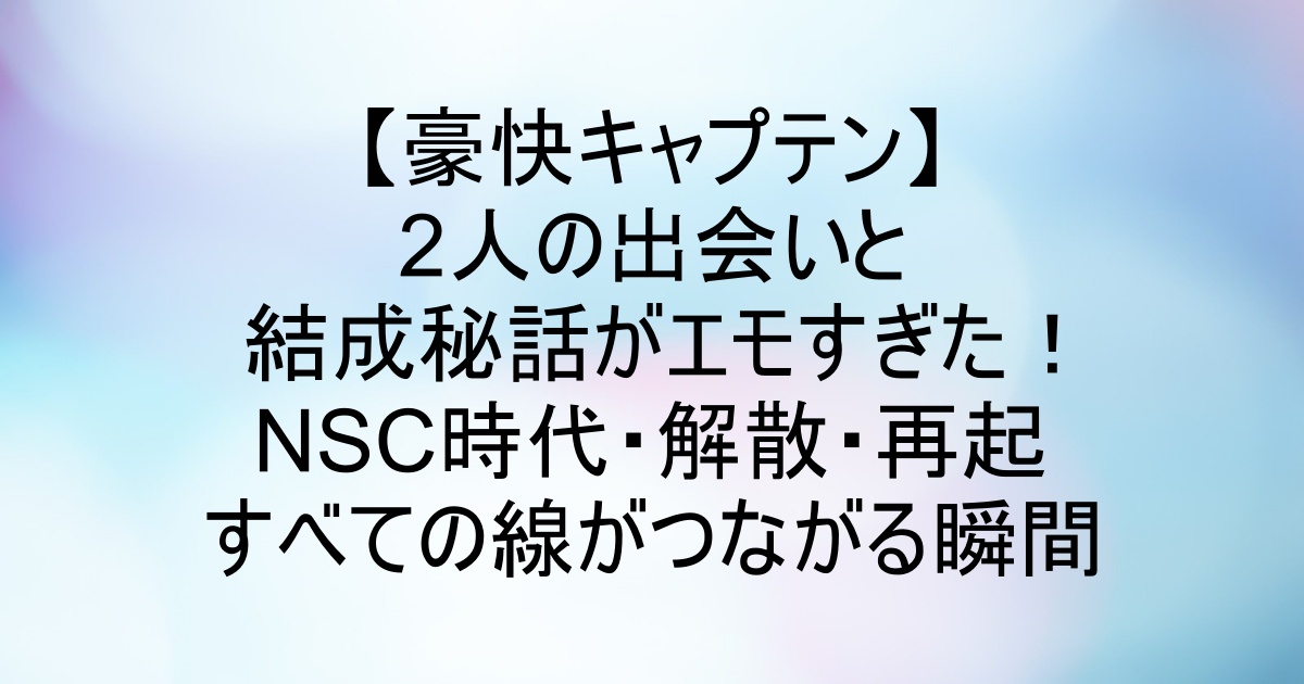 【豪快キャプテン】2人の出会いと結成秘話がエモすぎた!NSC時代・解散・再起…すべての線がつながる瞬間