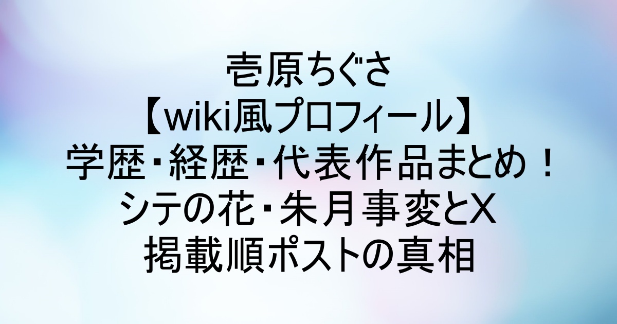 壱原ちぐさ【wiki風プロフィール】学歴・経歴・代表作品まとめ!シテの花・朱月事変とX掲載順ポストの真相