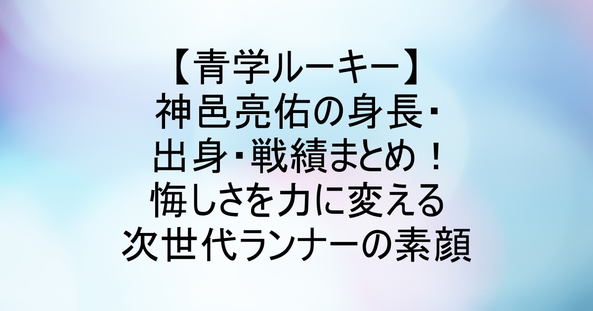 今回は、大学駅伝注目のルーキー・青山学院大学の神邑亮佑選手について、ご紹介しました。