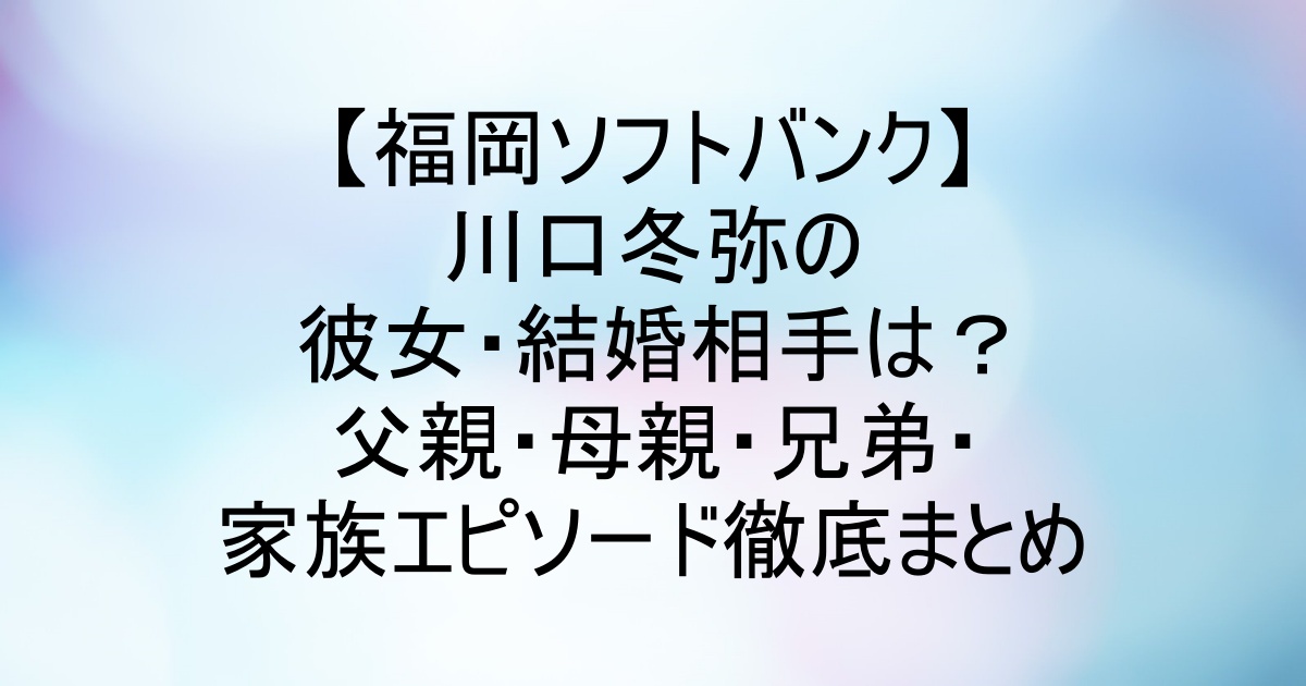 福岡ソフトバンクホークスの川口冬弥投手、気になって検索すると「川口冬弥 彼女」「川口冬弥 結婚相手」「父親」「母親」「兄弟」「家族」みたいなワードがズラッと出てきますよね。