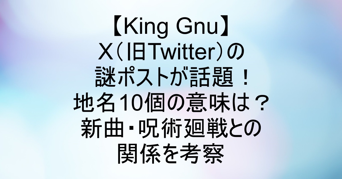 【King Gnu】X(旧Twitter)の謎ポストが話題!地名10個の意味は?新曲・呪術廻戦との関係を考察