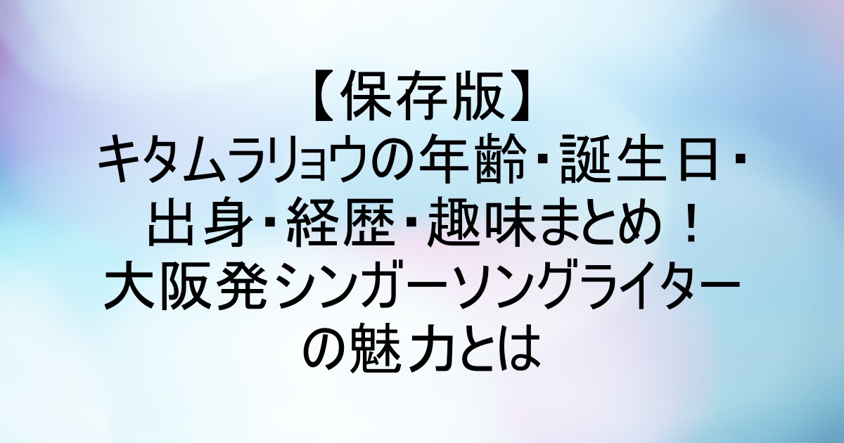 今回は、大阪在住のミュージシャン・キタムラリョウさんについて、まとめてみました。