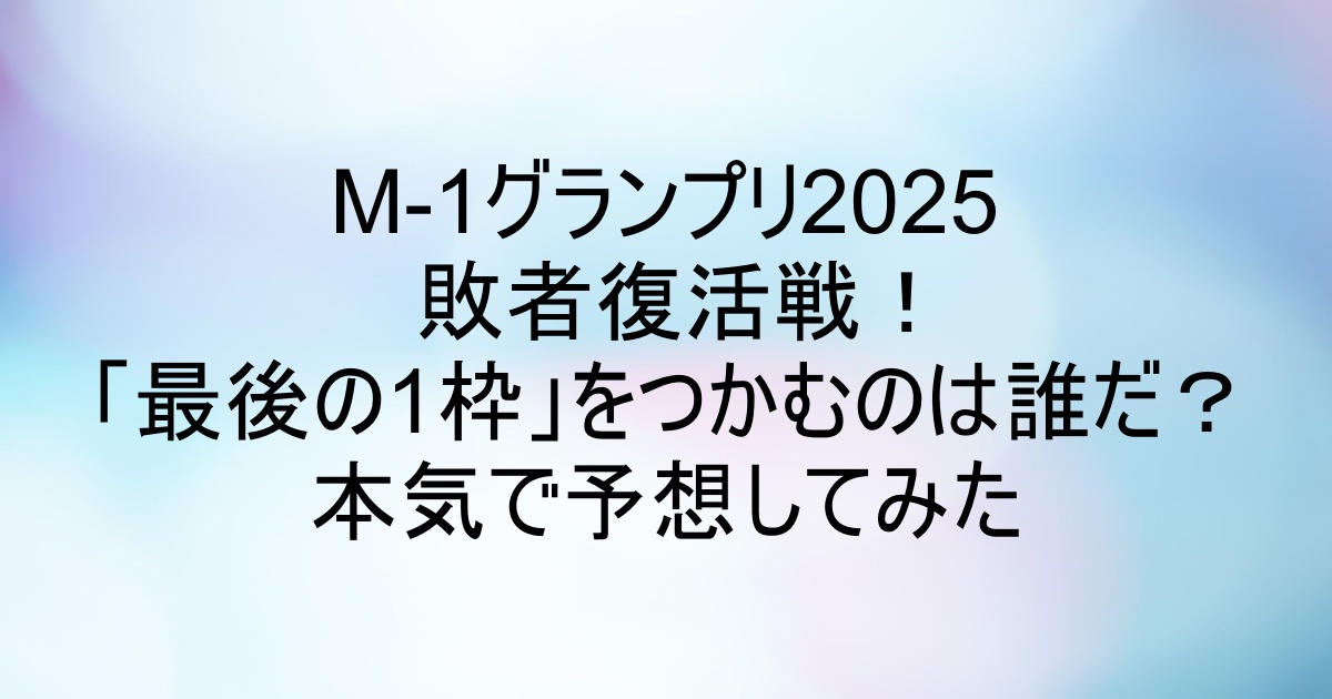 ということで、M-1グランプリ2025 敗者復活戦。あなたは誰が上がってくると思いますか?