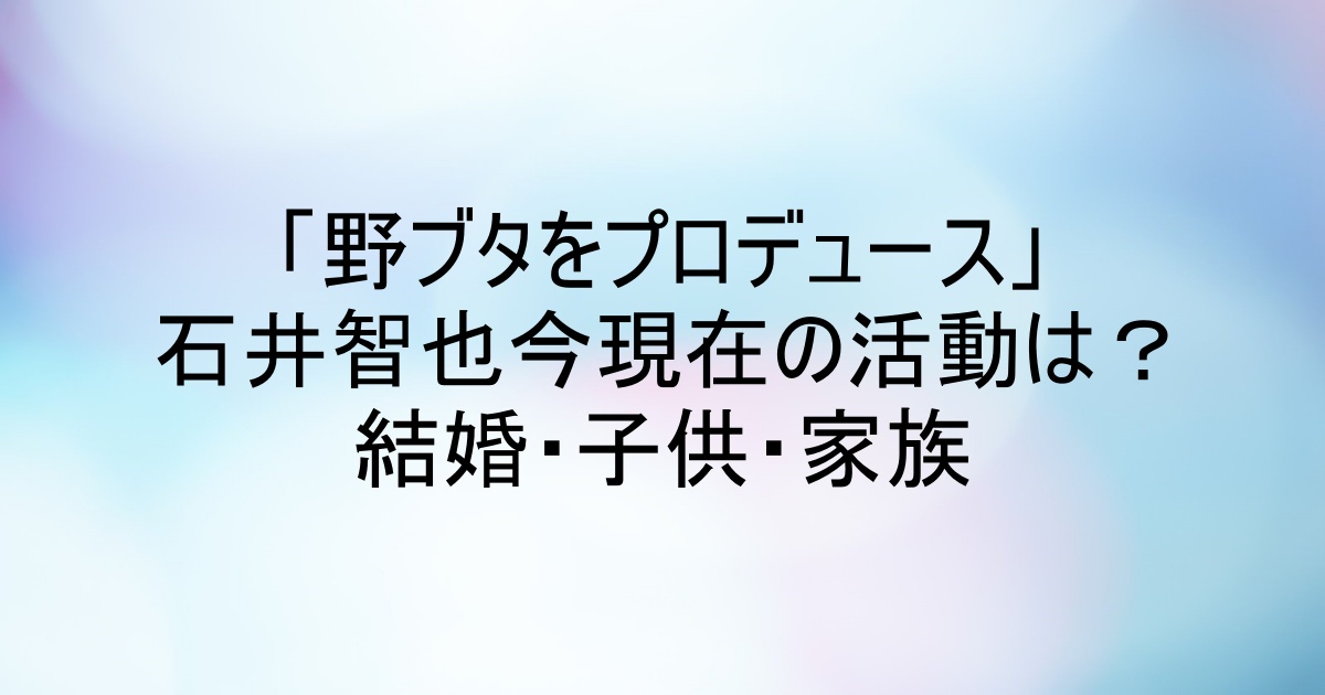今回は、ネット上の本人発信・公式情報を確認したうえで、石井智也さんの「現在・結婚・子供・家族」について、