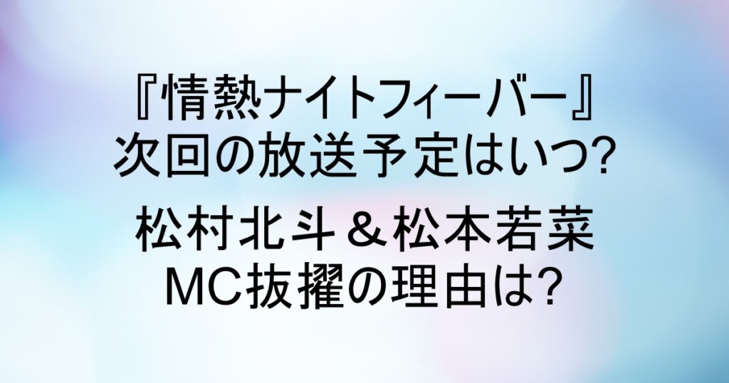 『情熱ナイトフィーバー』次回放送いつ?松村北斗&松本若菜MC抜擢の理由は?