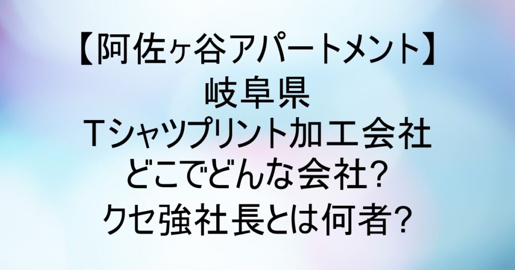 【阿佐ヶ谷アパートメント】岐阜県Tシャツプリント加工会社ってどこでどんな会社?クセ強社長何者?