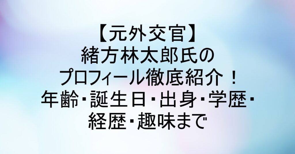 緒方林太郎氏のプロフィール徹底紹介!年齢・誕生日・出身・学歴・経歴・趣味まで【元外交官】