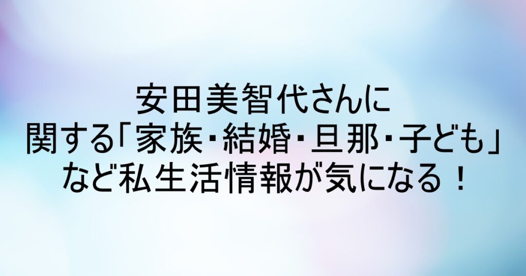 安田美智代さんに関する「家族・結婚・旦那・子ども」など私生活情報が気になる!