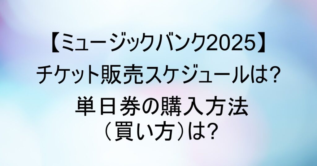 【ミュージックバンク2025】チケット販売スケジュールは?単日券の買い方は?