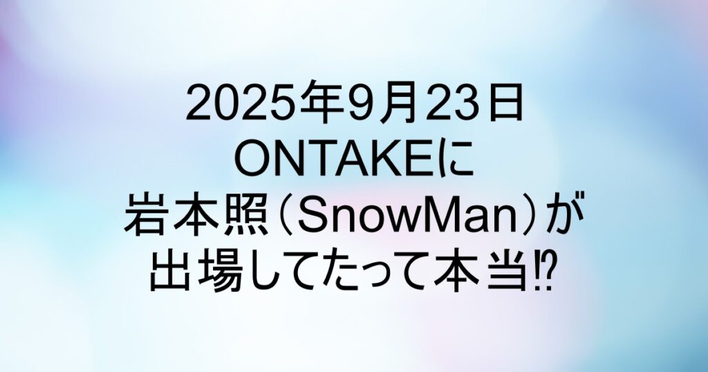 2025年9月23日のONTAKEに岩本照が出場してたって本当!?