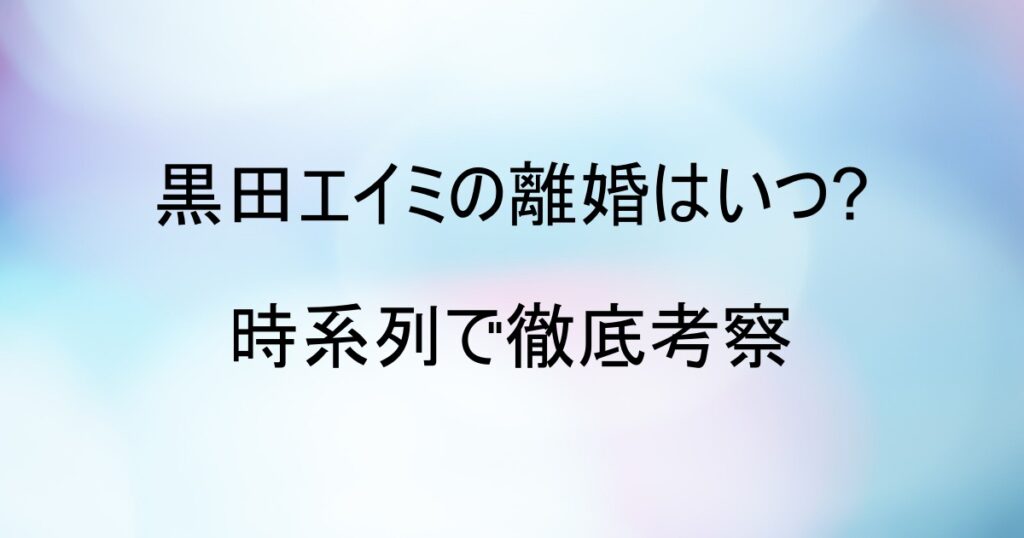 黒田エイミ離婚はいつ?時系列で徹底考察