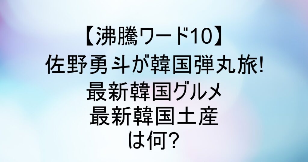 こんにちは、あゆりんです。 2025年9月26日放送の『沸騰ワード10』にM!LKの佐野勇斗さんが登場。 なんと、片道7,500円の格安で韓国に弾丸旅に行ってきたのだとか。 次回予告では、佐野勇斗さんが最新韓国グルメを堪能し、M!LKのメンバーに最新韓国土産を買... -