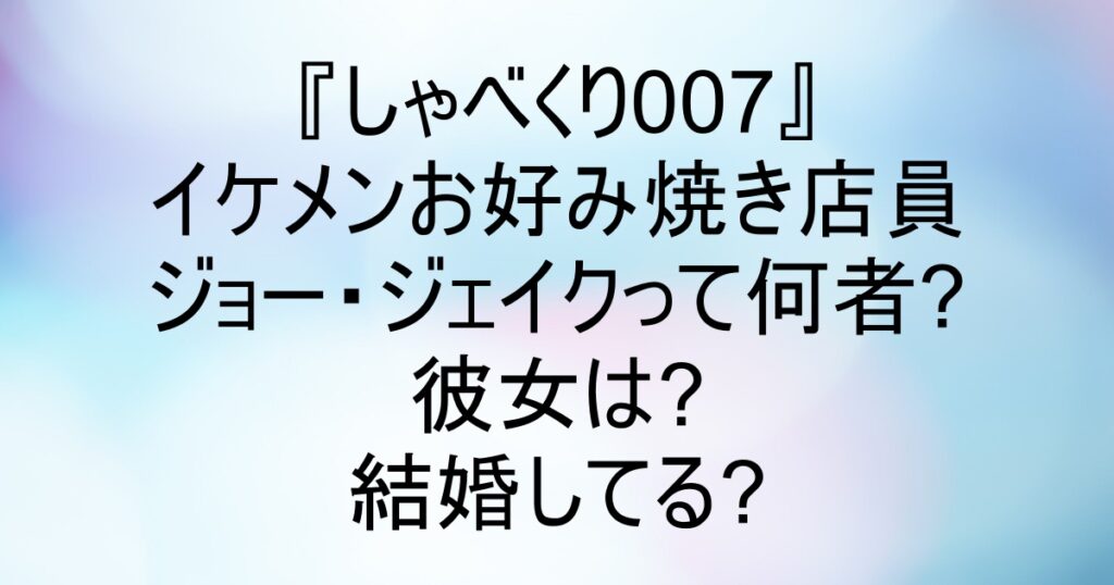 『しゃべくり007』イケメンお好み焼き店員ジョー・ジェイクって何者?彼女は?結婚してる?